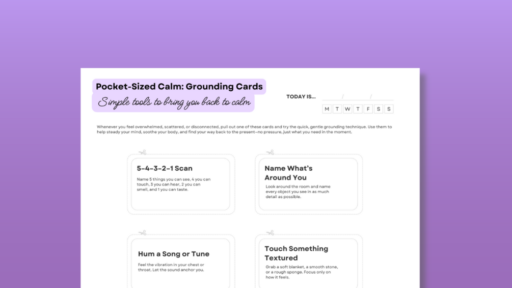 These printable grounding cards are designed to meet you where you are — whether you need a gentle pause, a calm reset, or a quick way to feel steady again.