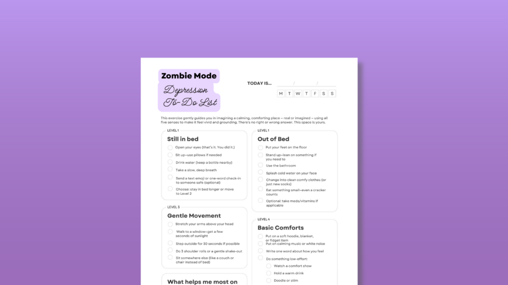 This printable “Zombie Mode” checklist was made for the hardest days — when depression, burnout, or executive dysfunction make even the tiniest tasks feel impossible.